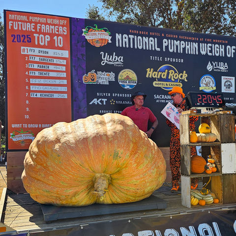 Established in 1921, the National Pumpkin Weigh Off moved in 2023 to Bishop’s Pumpkin Farm in Wheatland, approximately 20 miles north of Roseville. The all-day event is scheduled for Saturday, September 27th, 2025, with judging to begin at 11 a.m. With the highest prize pool in the world, growers from across the United States and Canada participate. First place prize base is $7500, doubled to $15,000 if it's over 2000 lbs, and increased a whopping 5x to $37,500 if it breaks the World Record! In all, the top 20 pumpkins will win cash prizes, potentially totaling over $63,000. Last year’s winner was Jim Sherwood, of Oregon, weighing in at 2,453 lbs.. Currently the World Record pumpkin is 2,749 lbs held by Travis Gienger of Minnesota. In addition to giant pumpkins, seven additional categories will be judged and awarded cash prizes, including bushel gourd, long gourd, tomato, marrow, sunflower, watermelon, and field pumpkin. Local 4-H and FFA students have again been given the opportunity and starter plants to grow giant pumpkins of their own. Students ranging from seven years old to 17 are eligible to enter the Future Farmers category, which will pay for the top ten places, with a top award of $1000. The California Pumpkin Growers Club is a non-profit organization composed of pumpkin and large vegetable growers throughout California. The Club is part of the Great Pumpkin Commonwealth (GPC), the international organization which sets the standards for the competitive weigh offs held around the world and officially tracks every weigh off and pumpkin entered. “The goal of the California Pumpkin Growers Club is to promote the growing of giant pumpkins and other vegetables through friendly competitions and through education of the non-growing public about what it takes to grow these giants,” said Brian Myers, Chairman of the California Pumpkin Growers Club. “The Club is thrilled to be at Bishop’s Pumpkin Farm again. We hope to see records fall as our monstrous pumpkins hit the scale.” Open from early-September through early-November, Bishop’s Pumpkin Farm is located at 1415 Pumpkin Lane in Wheatland, California. Since opening to the public in 1973 as a place for local students to experience an agriculture field trip, Bishop’s has grown to a regional destination, offering homemade foods, authentic farm fun and the largest u-pick pumpkin field in the world. Over 275,000 guests visit annually. “When the opportunity to host one of the most prestigious agricultural contests in the world presented itself, we gave a resounding yes,” said Bishop’s Pumpkin Farm Owner, Wayne Bishop. “It’s just the perfect fit for our business, our passion, and our ag-based community.” In addition to the weigh off, a VIP Meet-the-Growers Reception will be held on Friday September 26th and a National Pumpkin Weigh Off Awards Dinner will be held the evening of September 27th, both at the Hard Rock Hotel & Casino Sacramento at Fire Mountain, the Weigh Off’s Title Sponsor. “We love supporting our local community,” said Meghan McCarthy, Vice President of Operations for Hard Rock Hotel & Casino Sacramento. “Our region is truly an ag-tourism destination. We are excited to partner on this unique event again and can’t wait to welcome new visitors.”